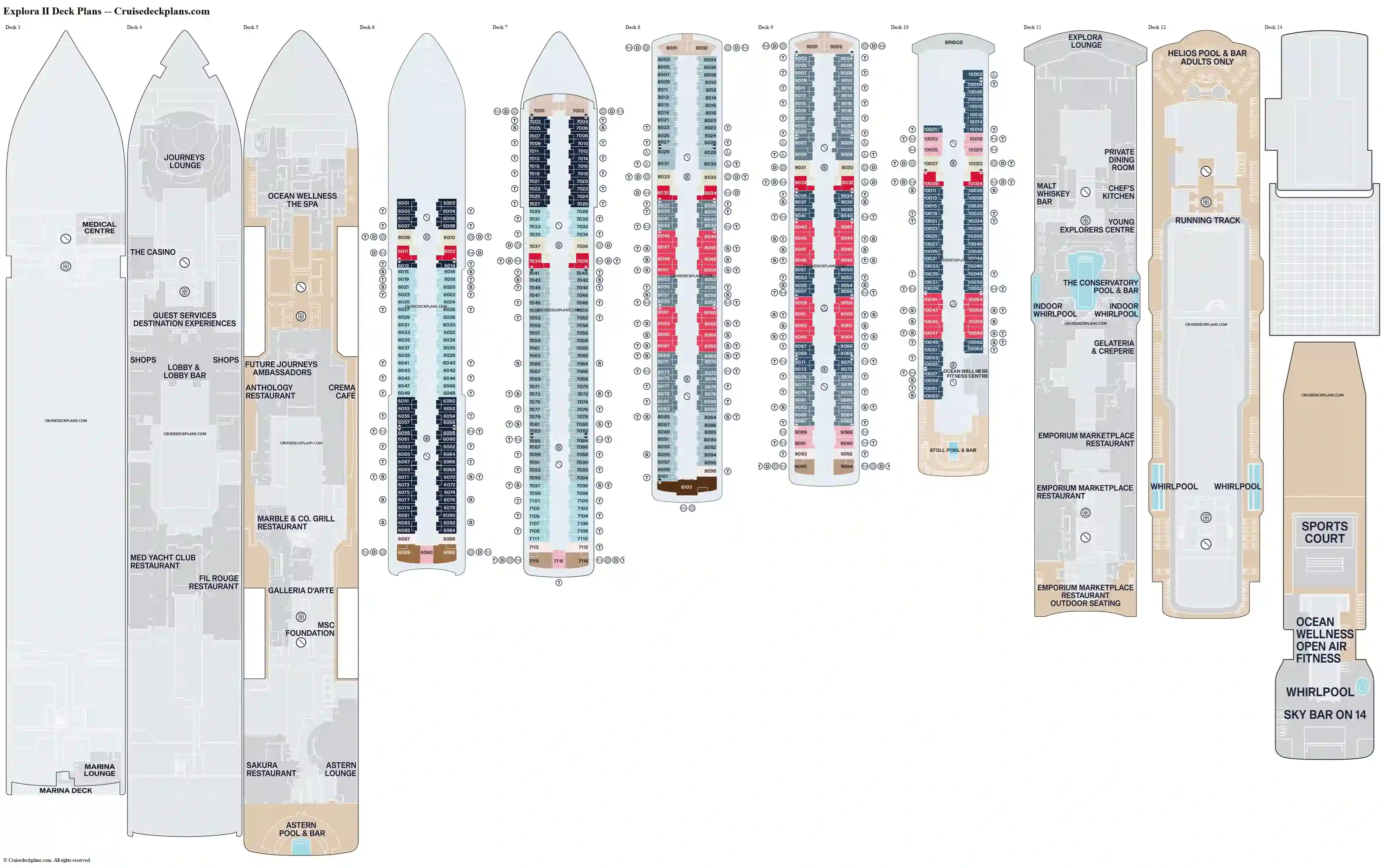 EXPLORA II erbjuder flera poolområden, privata cabanas och generösa soldäck där vi kan koppla av i en sofistikerad miljö. Ombord finns även Ocean Wellness – ett helhetskoncept som kombinerar spa, träning, mindfulness och skräddarsydda hälsoupplevelser.
